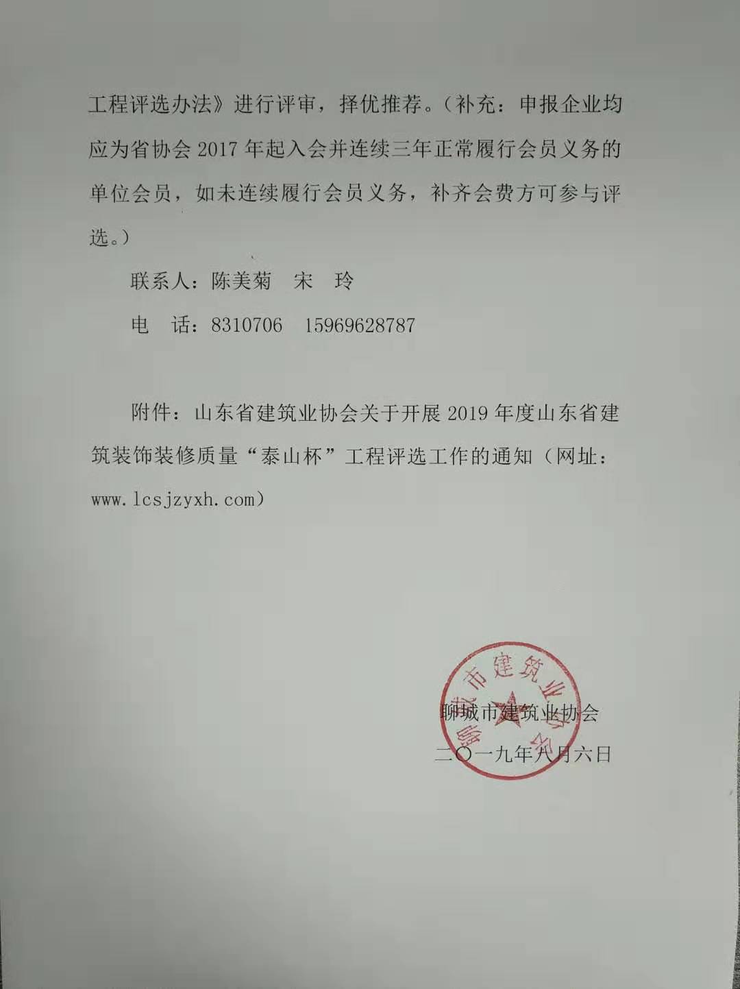 關(guān)于轉(zhuǎn)發(fā)《山東省建筑業(yè)協(xié)會(huì)關(guān)于開展2019年度山東省建筑裝飾裝修 質(zhì)量“泰山杯”工程評(píng)選工作的通知》的通知