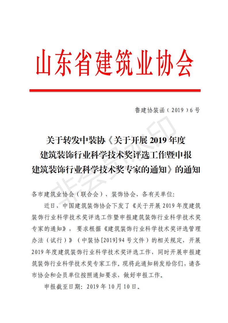附件:關(guān)于開展2019年度建筑裝飾行業(yè)科學(xué)技術(shù)獎評選工作暨申報建筑裝飾行業(yè)科學(xué)技術(shù)獎專家的通知.zip