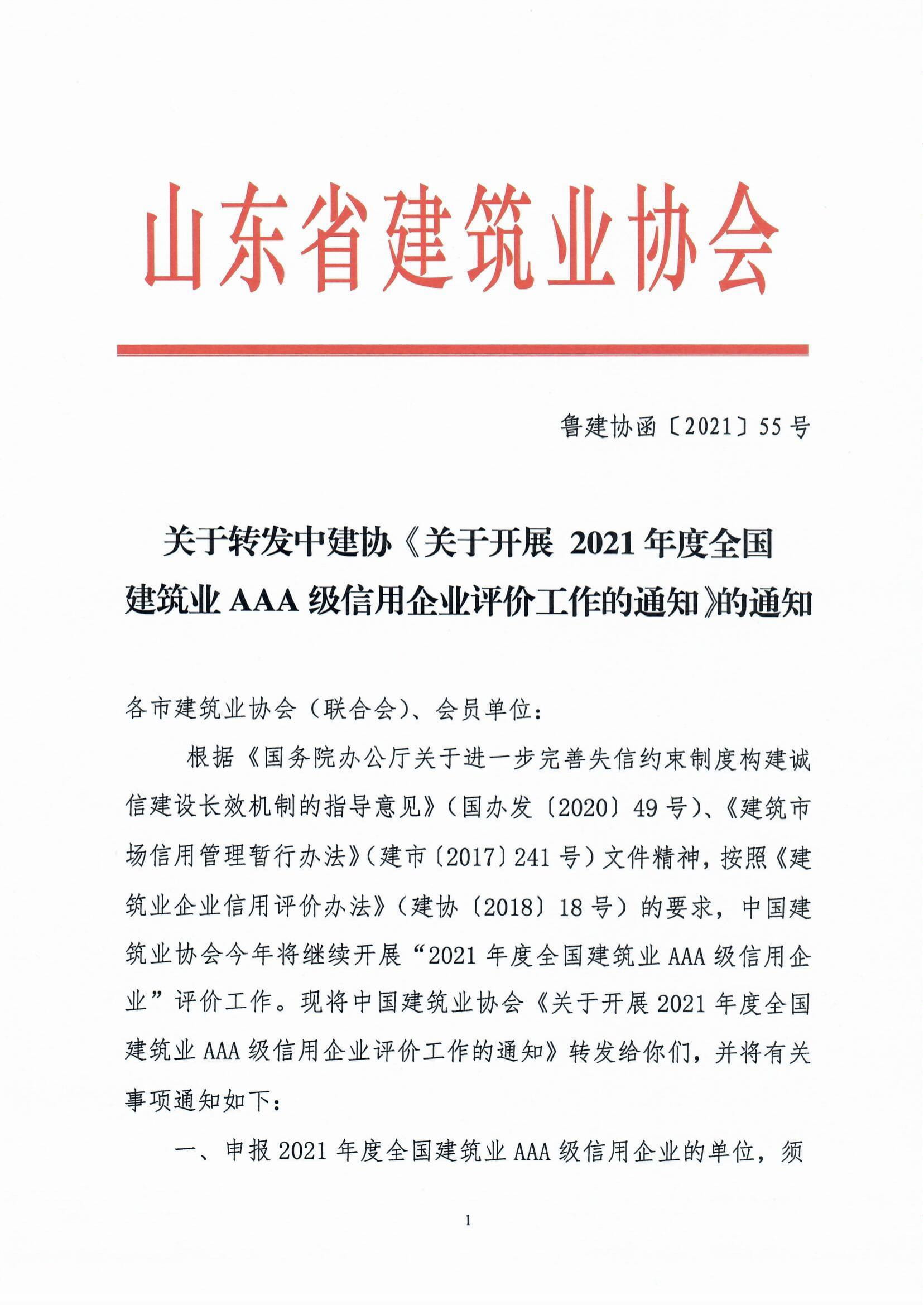 上一篇: 關于轉(zhuǎn)發(fā)山東省建筑業(yè)協(xié)會《關于組織2021年度推薦魯班獎和國家優(yōu)質(zhì)工程獎預申…