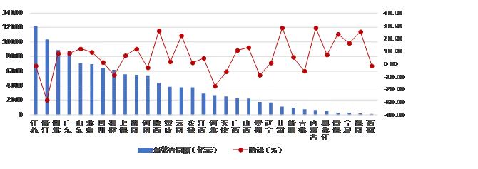 圖3 2019年上半年各地區(qū)建筑業(yè)企業(yè)新簽合同額及增速