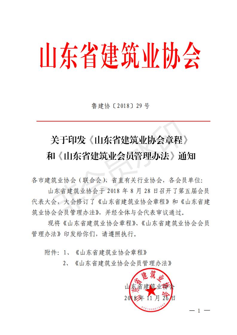 關(guān)于印發(fā)《山東省建筑業(yè)協(xié)會章程》 和《山東省建筑業(yè)會員管理辦法》通知